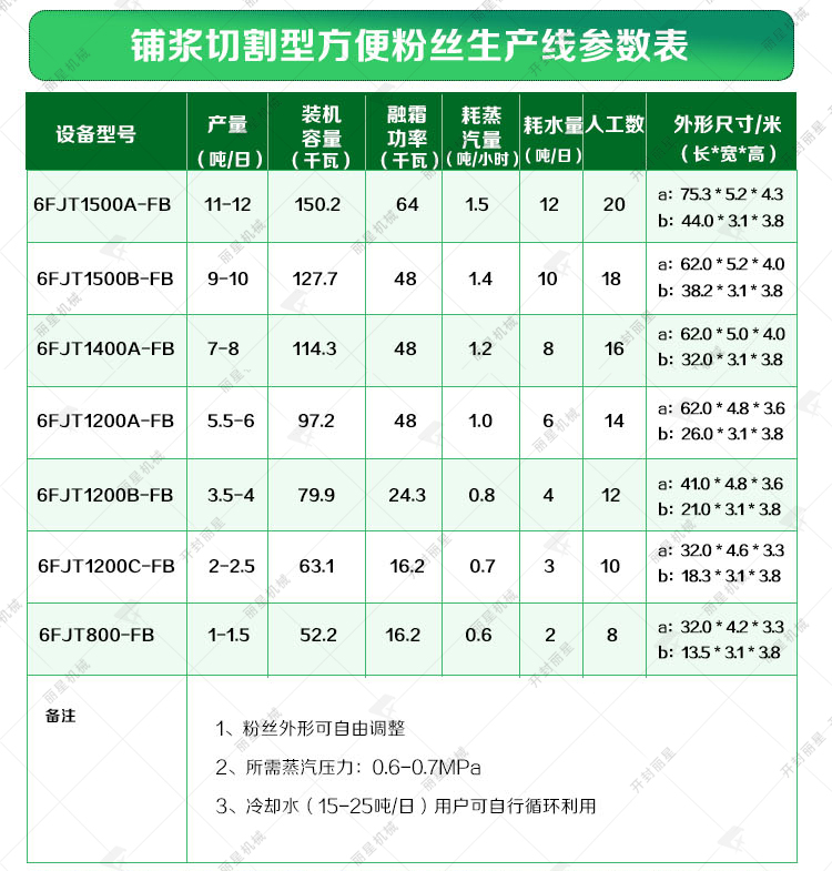 五、酸辣粉生產(chǎn)線技術(shù)參數(shù):